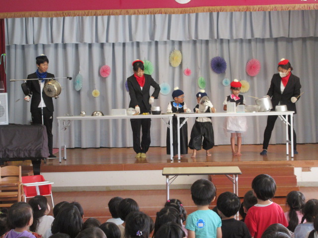 最後は、先生の出し物(変身トンネル、キッチンオーケストラ)を見て、楽しい時間を過ごしました。