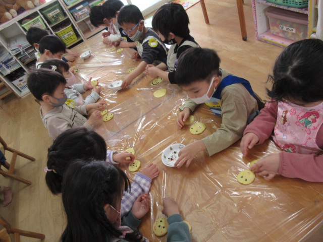幼児クラスの「いくの日(食育の日)」でクッキーづくりをしました。