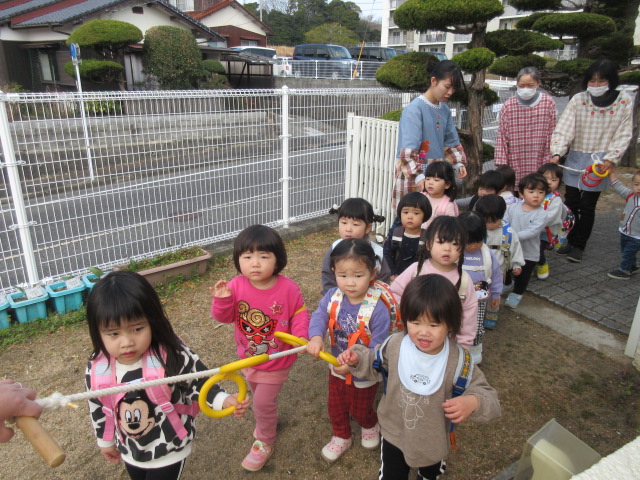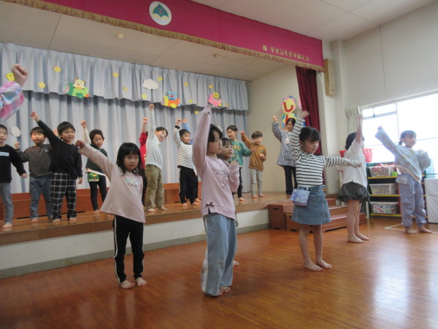 最後は、全員で「鬼レンジャー」の体操をして、鬼さんたちは帰っていきました。