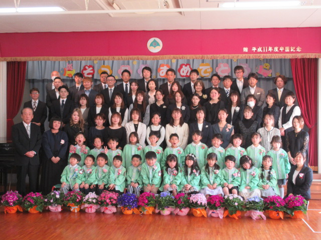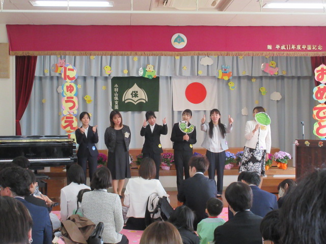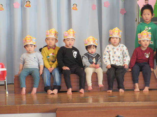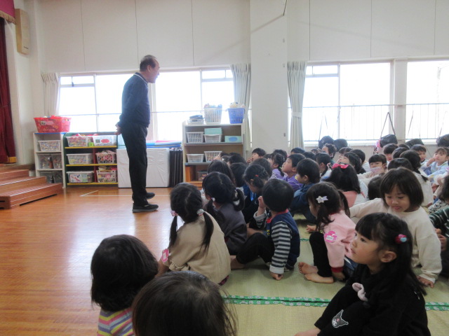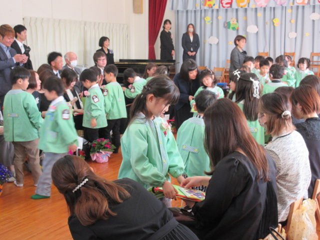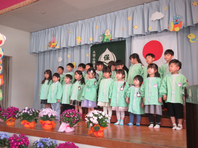 式では、園長先生より、1年間がんばったことや、4月から年長さんは小学生になり、在園のお友だちは、1つ上のクラスになる事などのお話がありました。