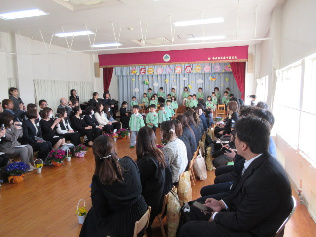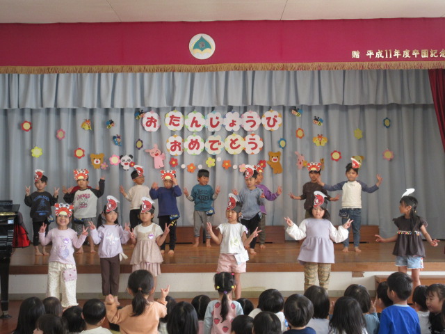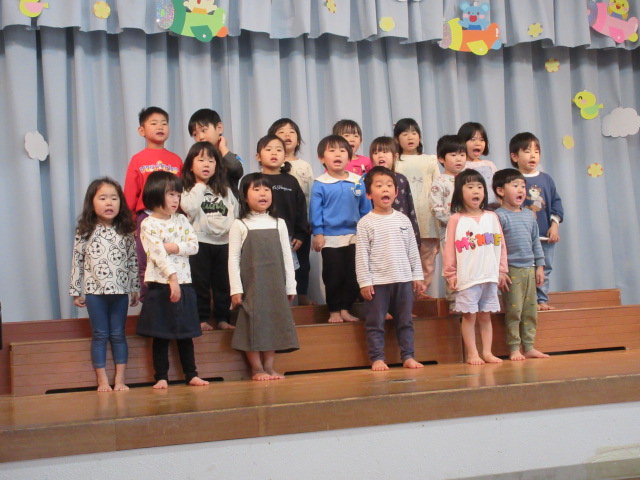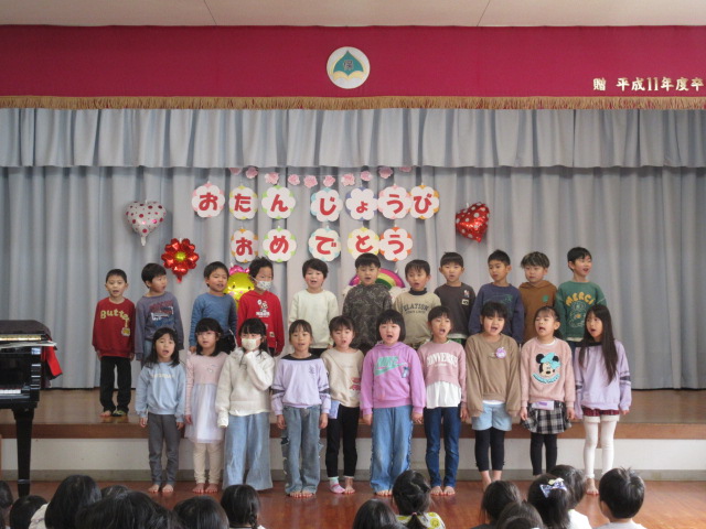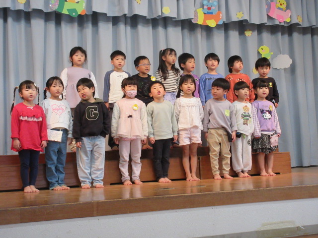 会の最後は4月から小学生になる、年長のお友だちが、「思いでのアルバム」をうたってくれ、今年度最後の誕生会を締めくくってくれました。