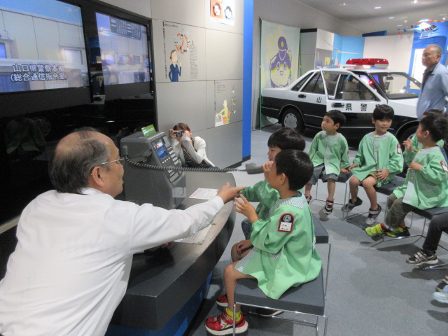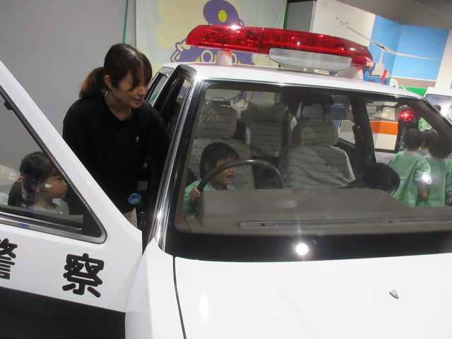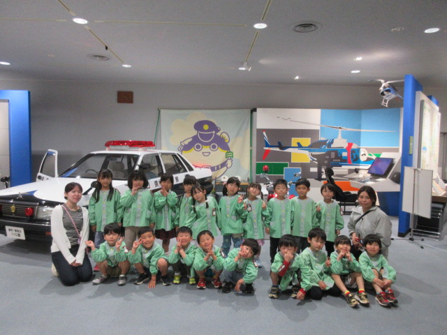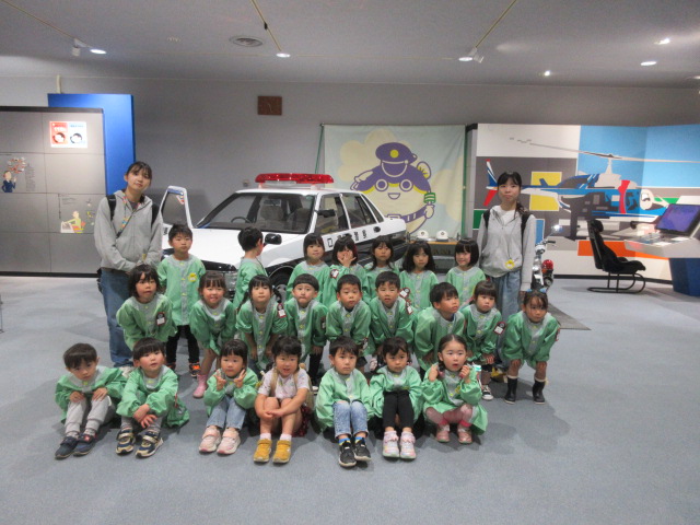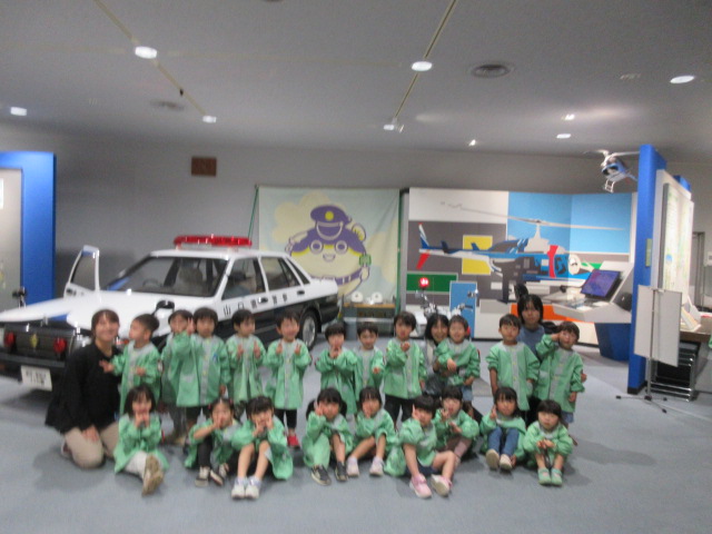 朝からあいにくの空模様で、幼児クラスは、常盤どうぶつ園の予定を変更し、消防署~空港~安全ふれあい生活館を見学した後、園に戻ってお弁当を食べました。