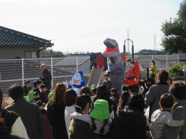 参観のあとは、園庭でダンスや先生の出し物を見ました。