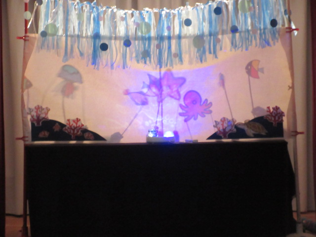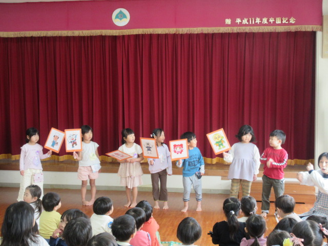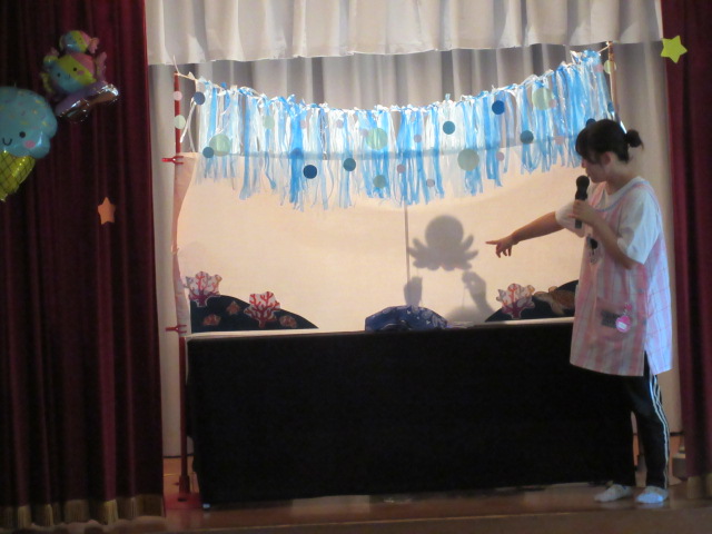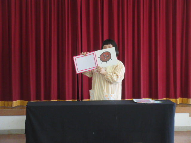 先生の出し物「おべんとうバスのシルエットクイズ」「むしバイキンの劇」を見て、楽しい時間を過ごしました。
