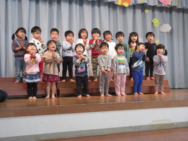 その後、2、3、4歳のクラスのお友だちが、ステージの上で歌を披露してくれました。