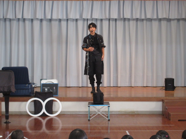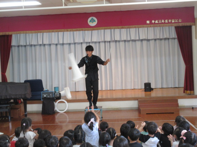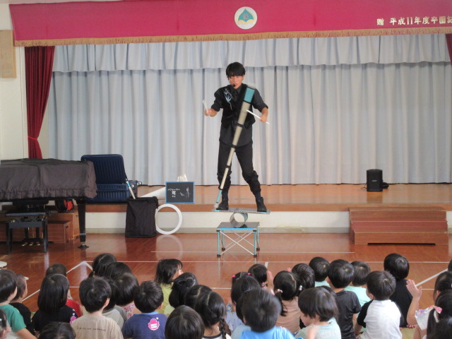 育児サークルと合同で、パフォーマー穹さんの演技を鑑賞しました。