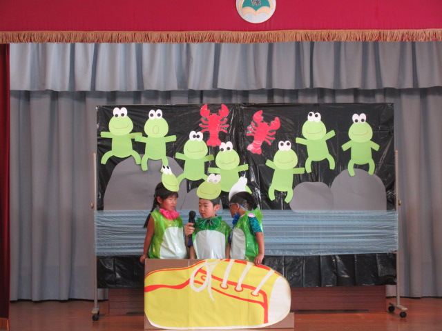 最後は、先生による出し物「10匹のかえる」の劇を見て楽しい時間を過ごしました。
