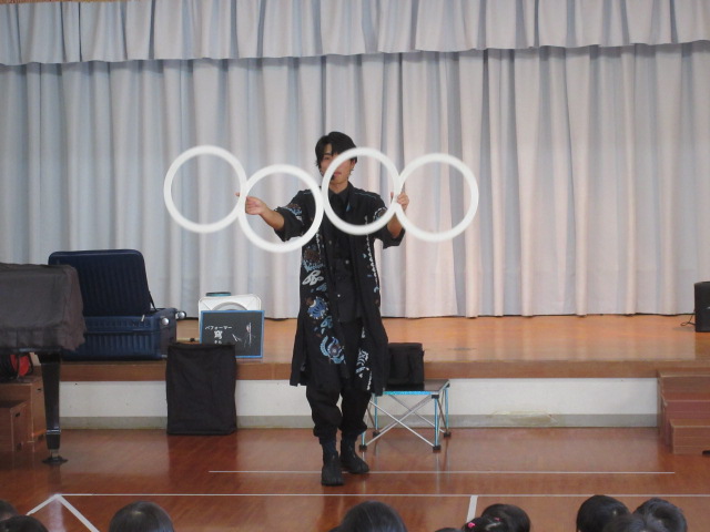 リングやガラス玉、中国ゴマの演技を見て「すごーい」と、大盛り上がりの子どもたちでした。