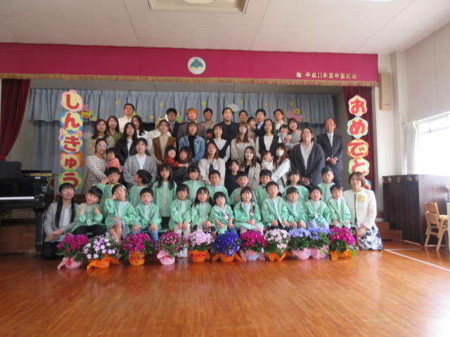 新年長さん、新年中さん、新年少さんが歌の披露をしてくれ、園からの連絡事項や職員の紹介を行ったあと、最後は写真撮影を行いました。