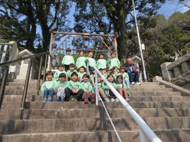 護国神社では、各クラスからダンスの見せ合いをしたり、お弁当を食べたりと、楽しい時間を過ごしました。もうすぐ卒園の年長の子どもたち。天気も良く、楽しく遠足が行え、楽しい思い出がまたひとつできました。