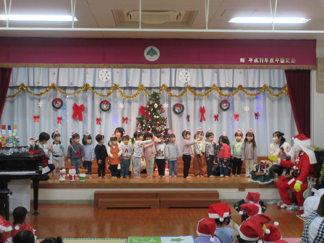 式では、園長先生より、1年間がんばったことや、4月から年長さんは小学生になり、在園のお友だちは、1つ上のクラスになる事などのお話がありました。