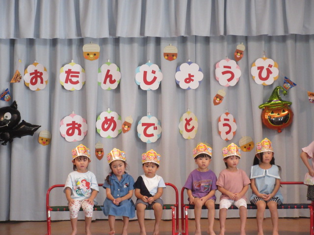 年長の誕生会当番による、アイスクリームの手遊びで会が始まり、8月生まれのお友だちが紹介されました。