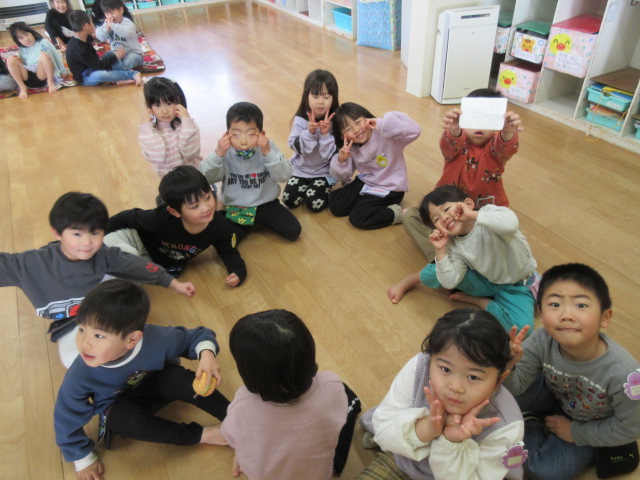先生の出し物「隠れているのは何でしょう?」「節分のペープサート」を見て楽しい時間を過ごしました。