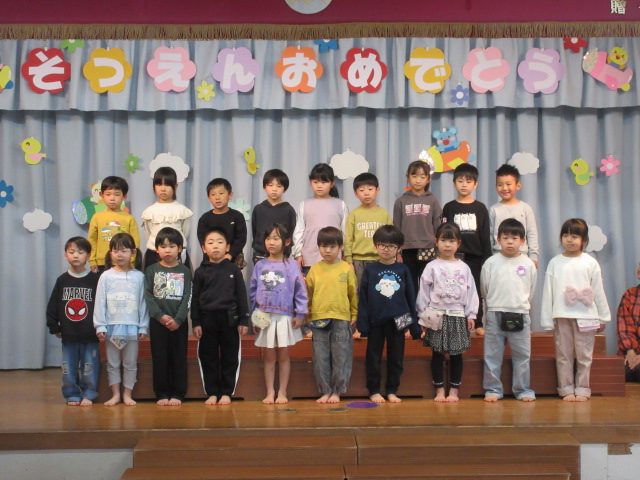 小さな体で通い始めたあの日から、たくさんの経験を重ね、心も体も大きく成長した子どもたち。式では、子どもたちから、お父さんお母さんへの感謝の気持ちを伝えたりと、今日の立派な姿に、胸がいっぱい、涙あふれる良い式となりました。